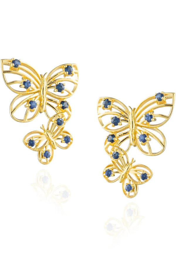925 Silver Earrings plated in 18k Yellow Gold with Blue Sapphire