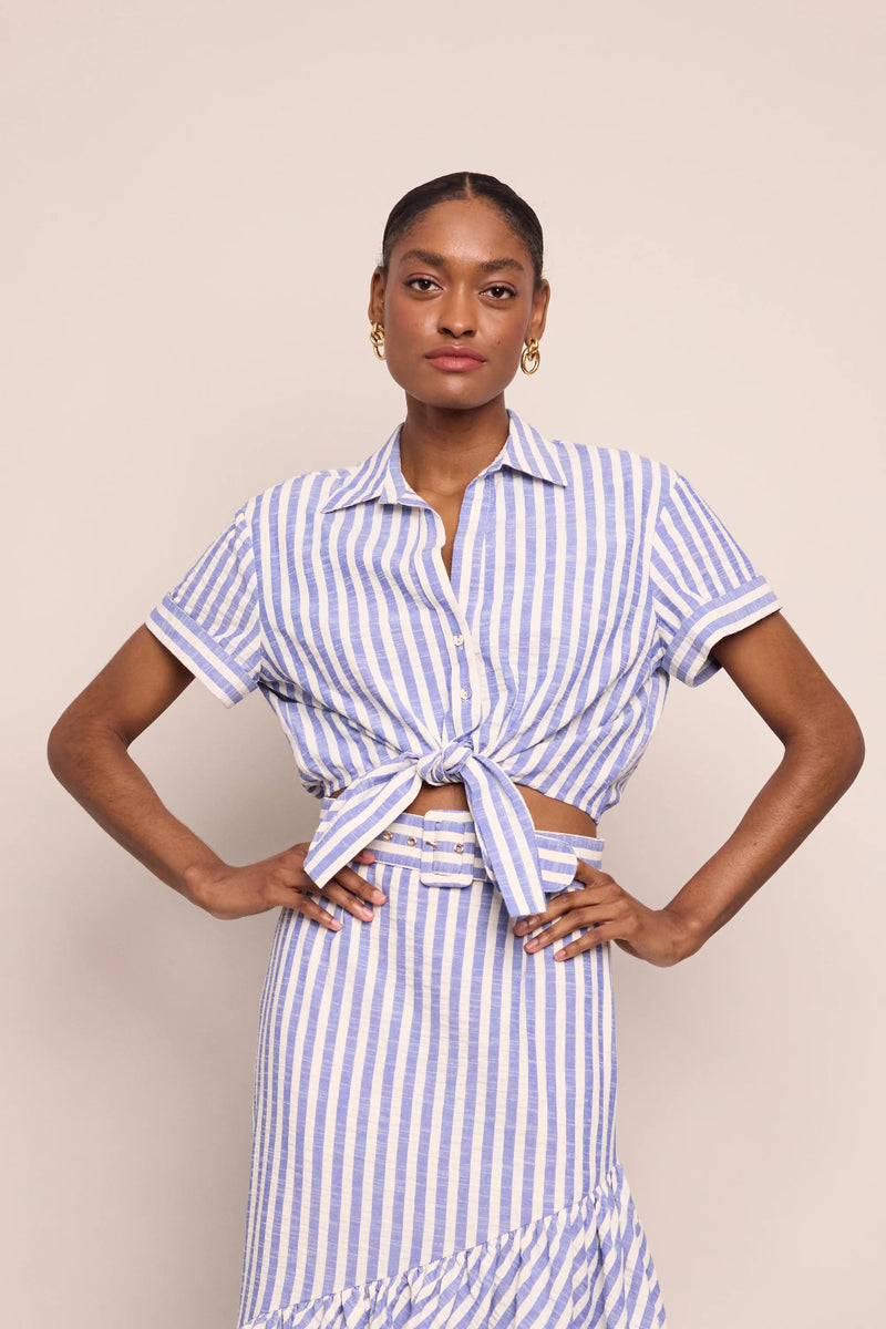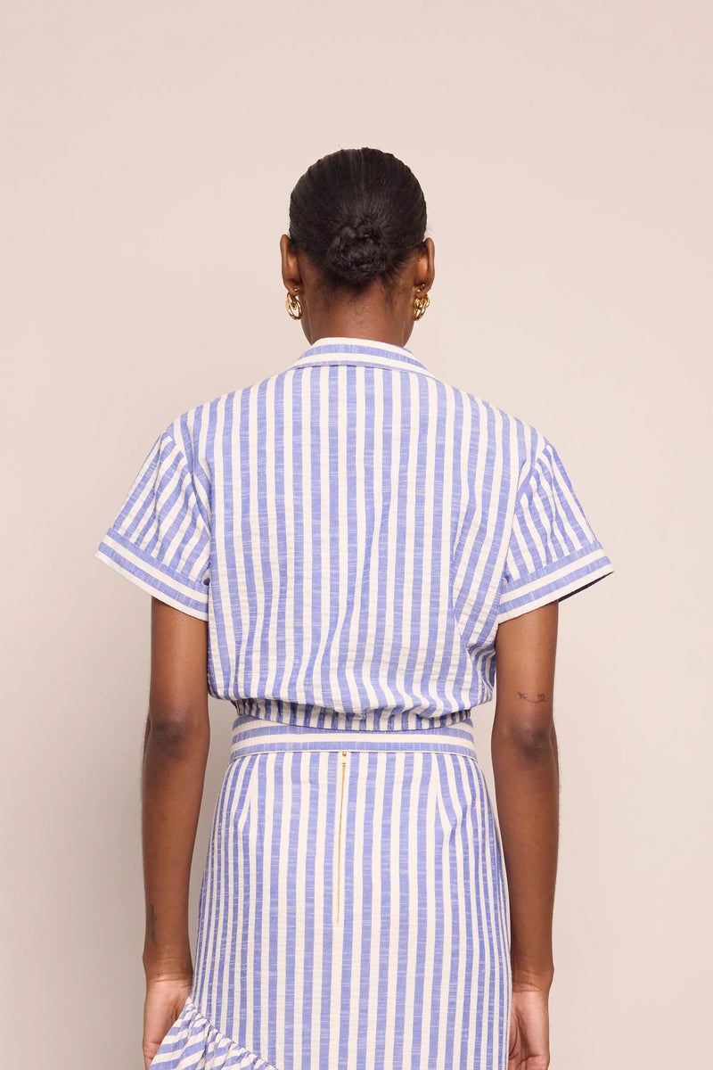 Asbury Top Ivory-Blue Striped Seersucker (Final Sale)