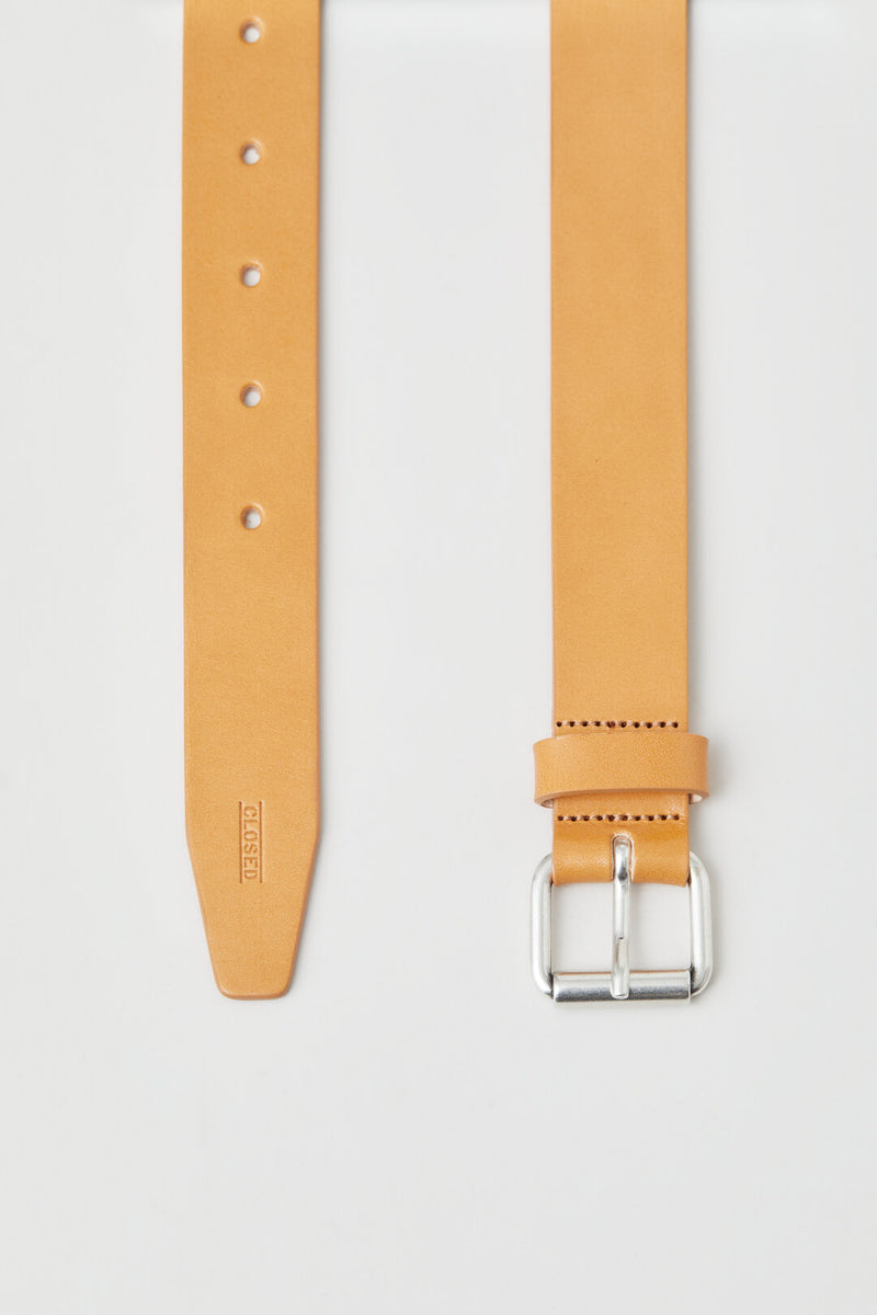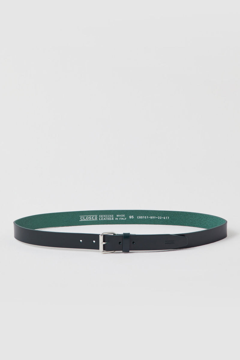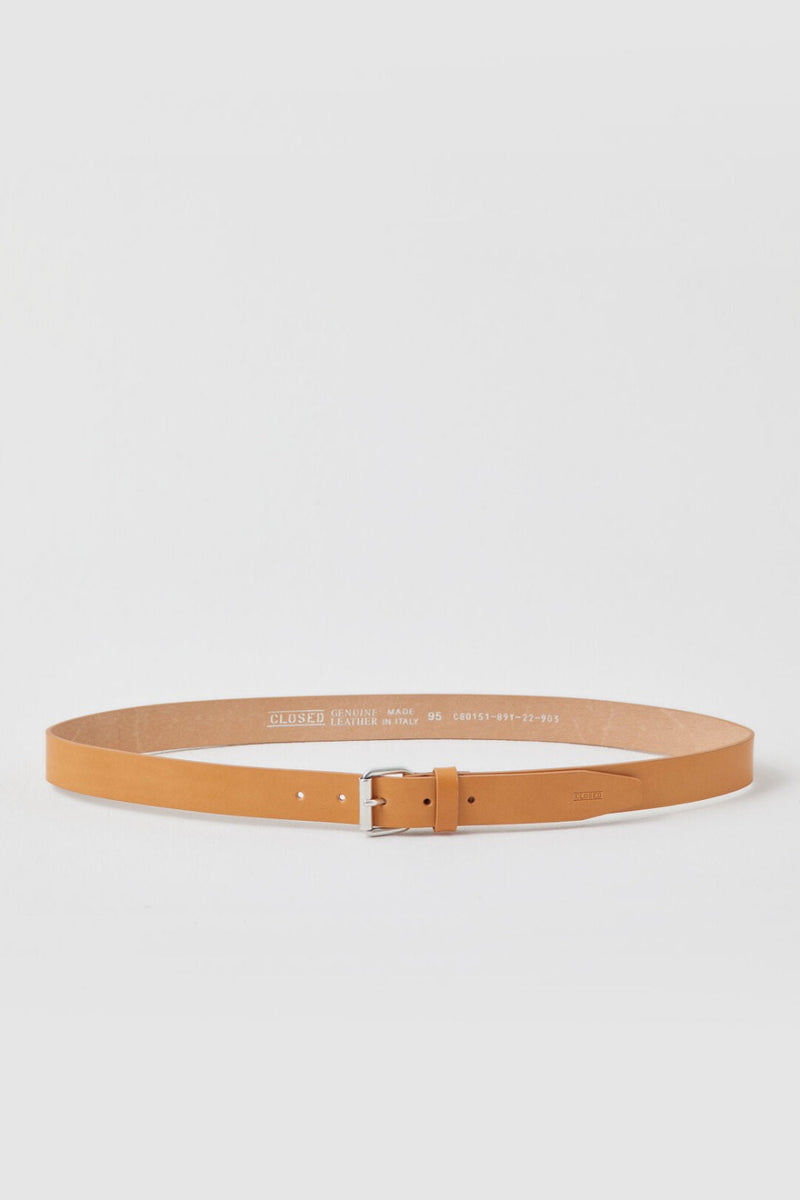 Made of vegetable tanned leather with multiple hand-dyed and polished edges: belt with C embossing and metal pin buckle.