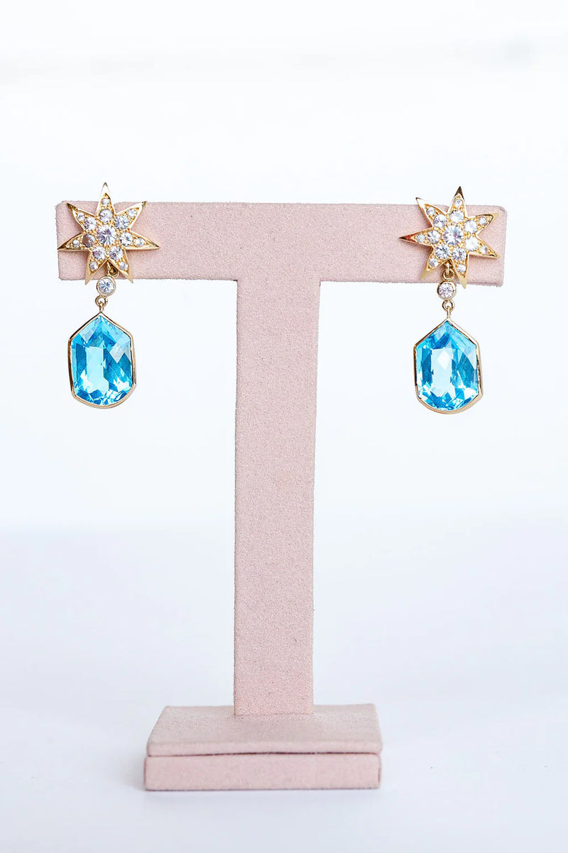 Composition: 18k Gold, white Sapphires, London blue topaz extentions 30 ct