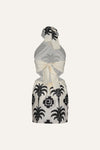 A classic Johanna Ortiz silhouette, this embroidered cotton dress showcases intricate palm motifs in a bold ecru and black palette. Designed with a halter neckline and cinched waist, it exudes effortless elegance.